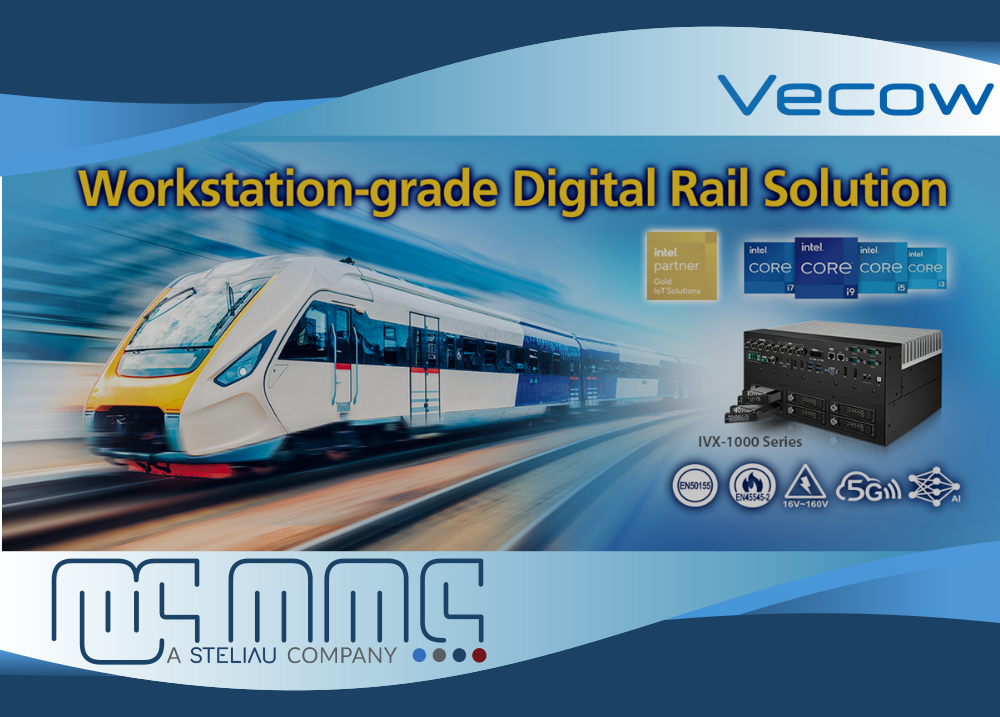 La serie IVX-1000 que lanza nuestro partner Vecow está equipada con los últimos procesadores Intel® Core™ i9/i7/i5/i3 de 16 núcleos (Alder Lake-S) que funcionan con el chipset Intel® R680E de grado workstation. La arquitectura híbrida de rendimiento avanzado y con gran capacidad de AI, los gráficos MXM compactos opcionales aceleran la productividad de IA de forma excepcional, la entrada de alimentación de CC de 16V a 160V con protección de aislamiento son algunas de las características principales de esta novedad en el mundo ferroviario.